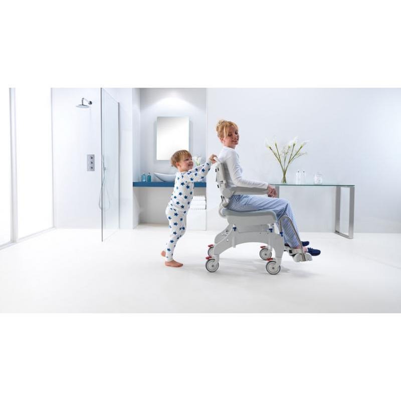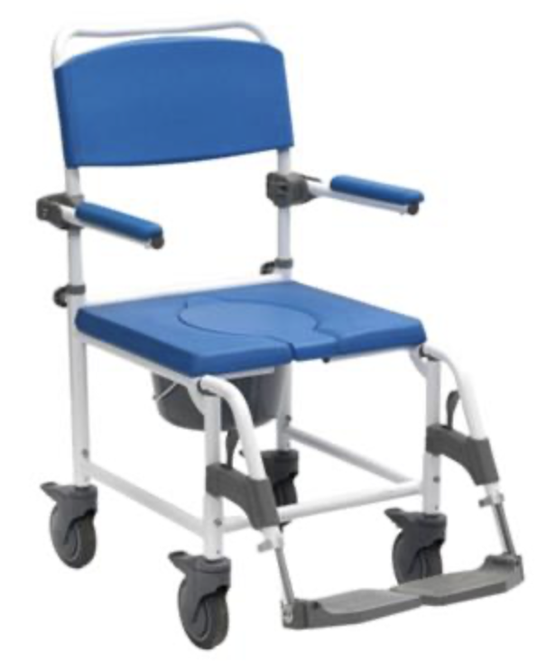 La silla de ducha/WC con ruedas permite trasladar al paciente fácilmente hasta la ducha o el inodoro. Este tipo de silla de ducha con ruedas facilita las transferencias y aporta mayor comodidad tanto a quien la necesita como a su cuidador.